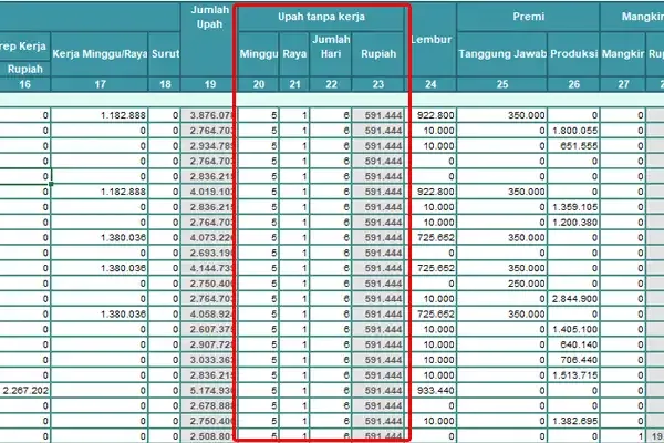 Upah tanpa kerja diberikan perusahaan sebagai ganti atas upah pokok yang jatuh pada hari tanggal merah (hari libur). Seluruh karyawan yang masih aktif pada bulan berjalan akan mendapatkan upah tanpa kerja yang sama.
